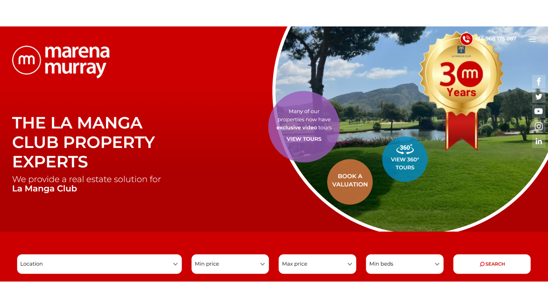 Marena Murray is the premier estate agency for La Manga Club, offering decades of expertise in property sales, management, and holiday lettings within this world-renowned resort. Located in the heart of the Costa Cálida, we specialise in connecting clients with stunning properties tailored to their dreams, whether it’s a holiday home, investment, or forever home.